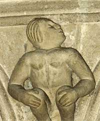 Sitzender (Adam?) im Kapitel der Stadtkirche St.