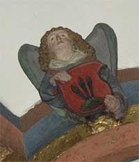 Engel im Wappen des Kirchenkastens über dem